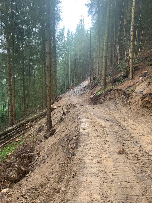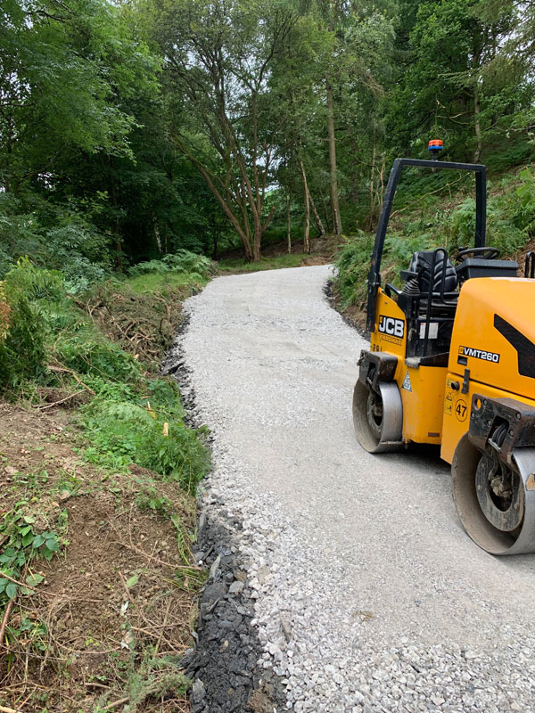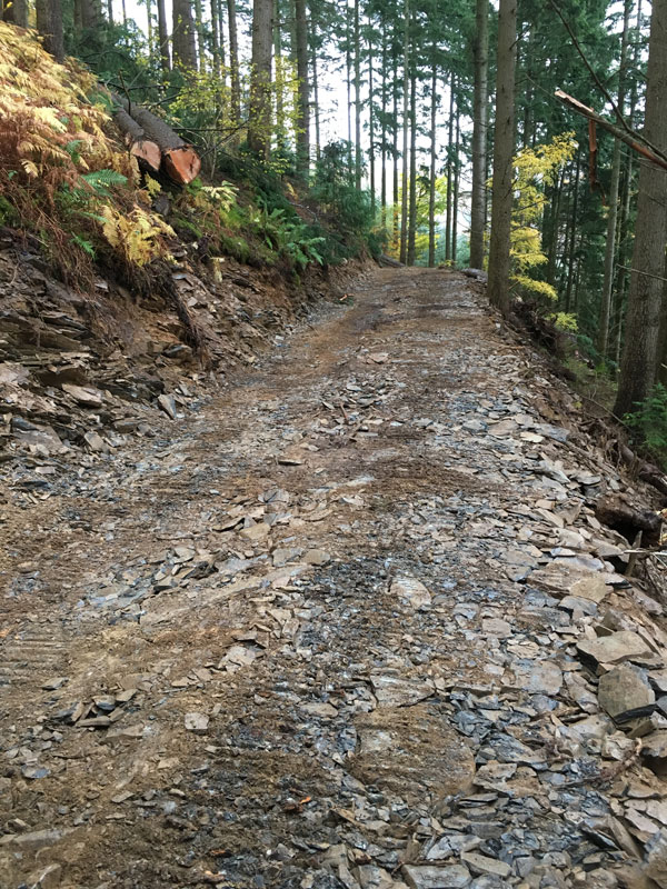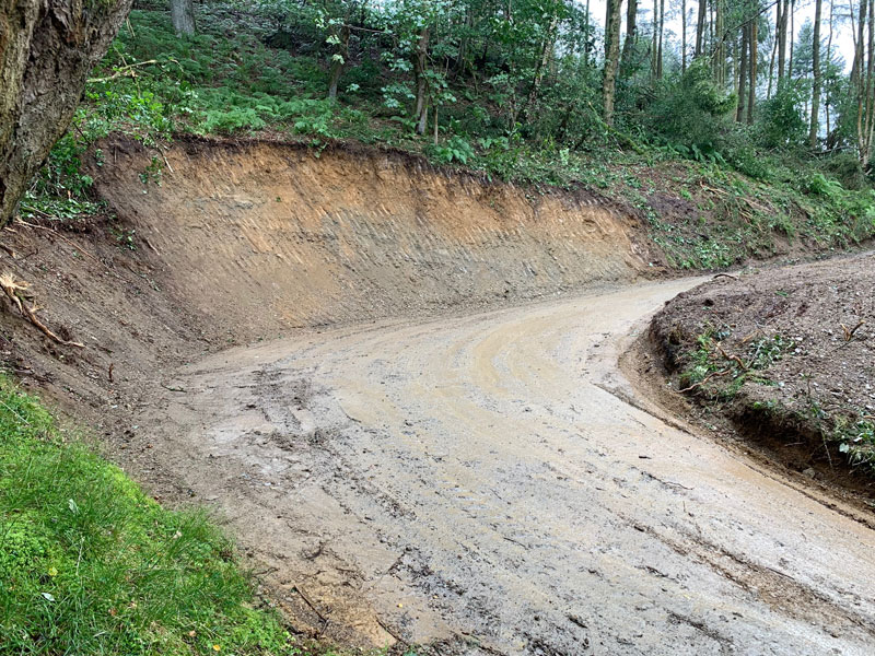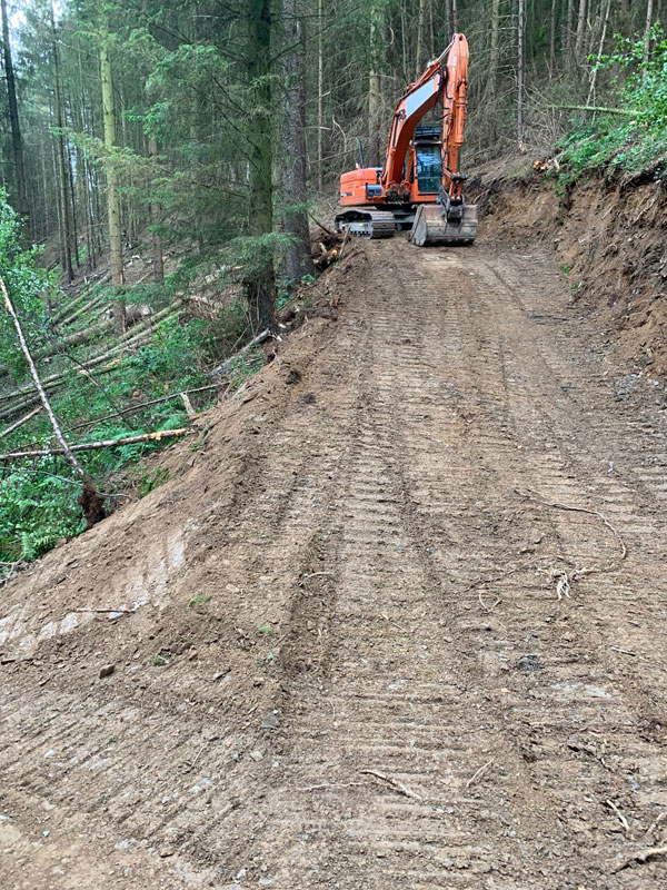 We have completed numerous contracts for the formation and reinstating of forestry roads. Customers have ranged from farmers, private woodlands, and managed estate woodlands. Contracts have involved the cutting of new roads, widening and re-surfacing existing roads, installing culverts and run off washes to divert water. We have excavated large areas to create turning areas, and bases for log stacking. We have cut roads through steep gradients, with rock outcrops.