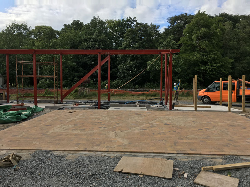 We were commissioned by Lord Newborough to build the first Farm Drive Thru in the UK. We completed extensive groundworks, installed all utilities, surface water drainage and foul water drainage, including a new sewerage treatment plant to service the site. We formed a road and car parking areas, finished with coloured stone and landscaped the embankments. We installed steel bollards and kerbs, and laid block paving for disabled parking. We excavated and installed foundations ready for installing the steel framed building. We then roofed, timber panelled, clad with cedar and insulated the building.